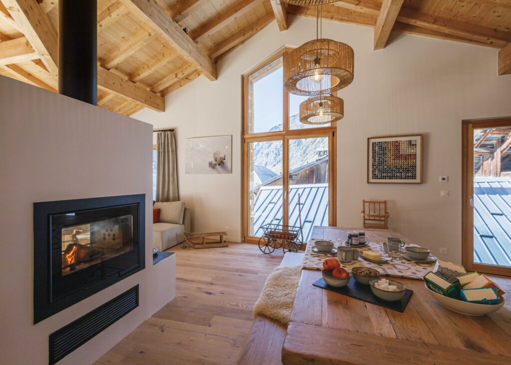 Aujourd’hui, ce chalet issu d’une rénovation complète allie patrimoine et modernité. Il s’intègre harmonieusement dans son environnement villageois, tout en proposant des prestations actuelles en matière de confort, d’isolation et de qualité de vie.