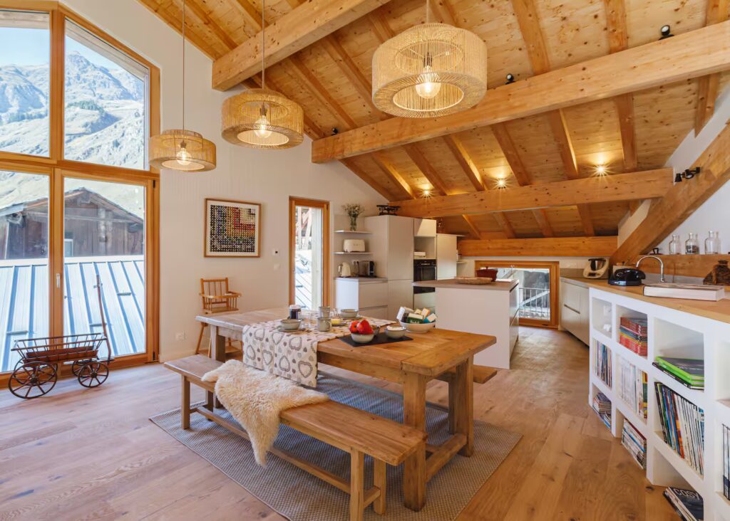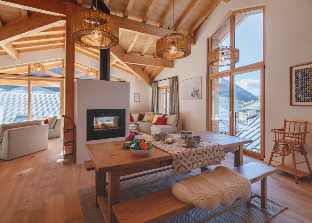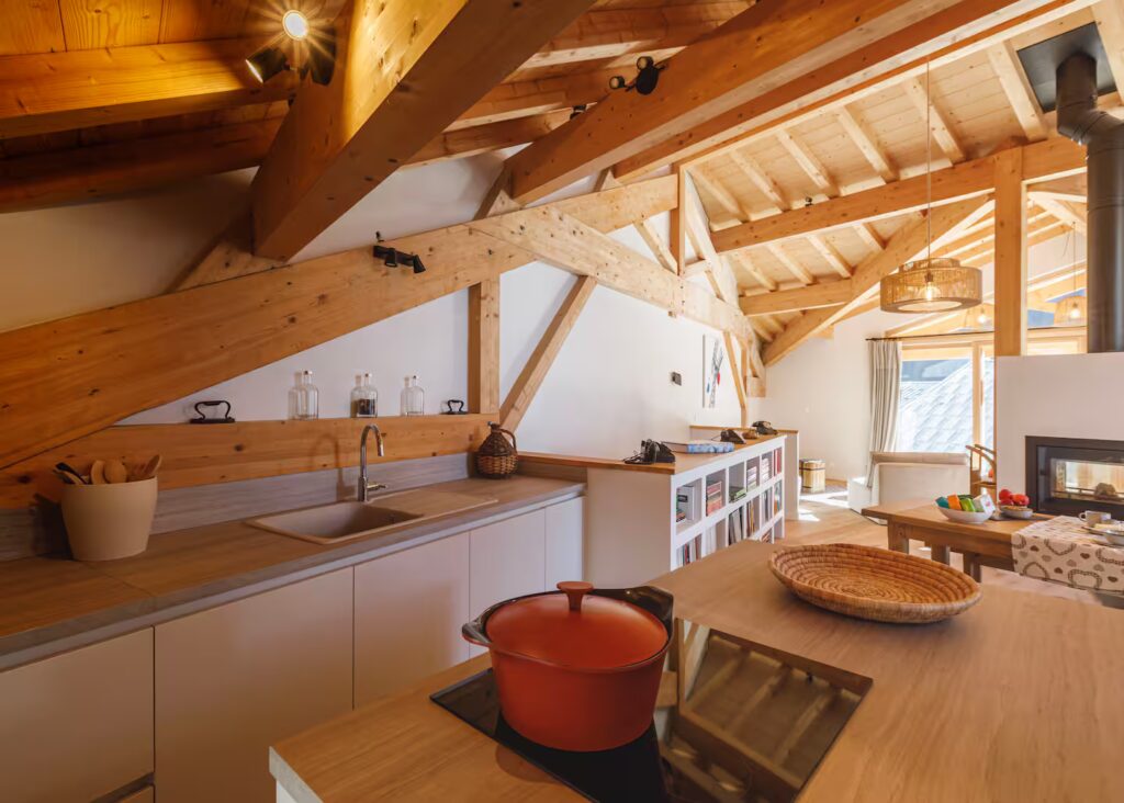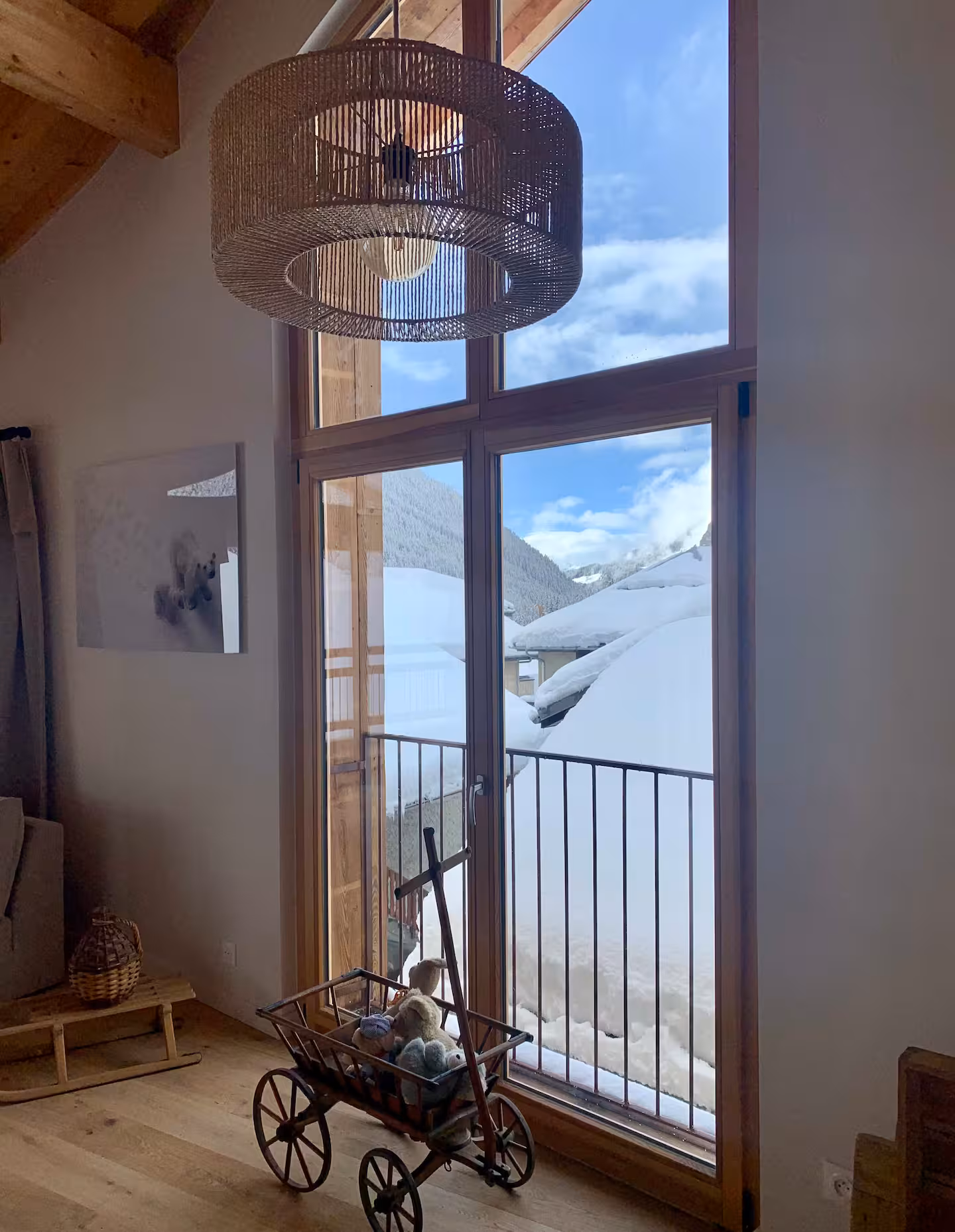 Les fenêtres ont été orientées pour capturer les plus beaux points de vue sur le paysage environnant, créant un lien constant entre l’intérieur chaleureux et la nature alpine. Chaque détail a été pensé pour préserver le caractère authentique du bâtiment tout en offrant une expérience de vie moderne et raffinée.