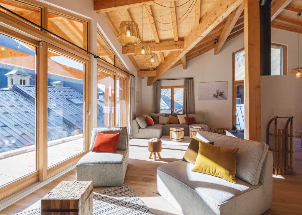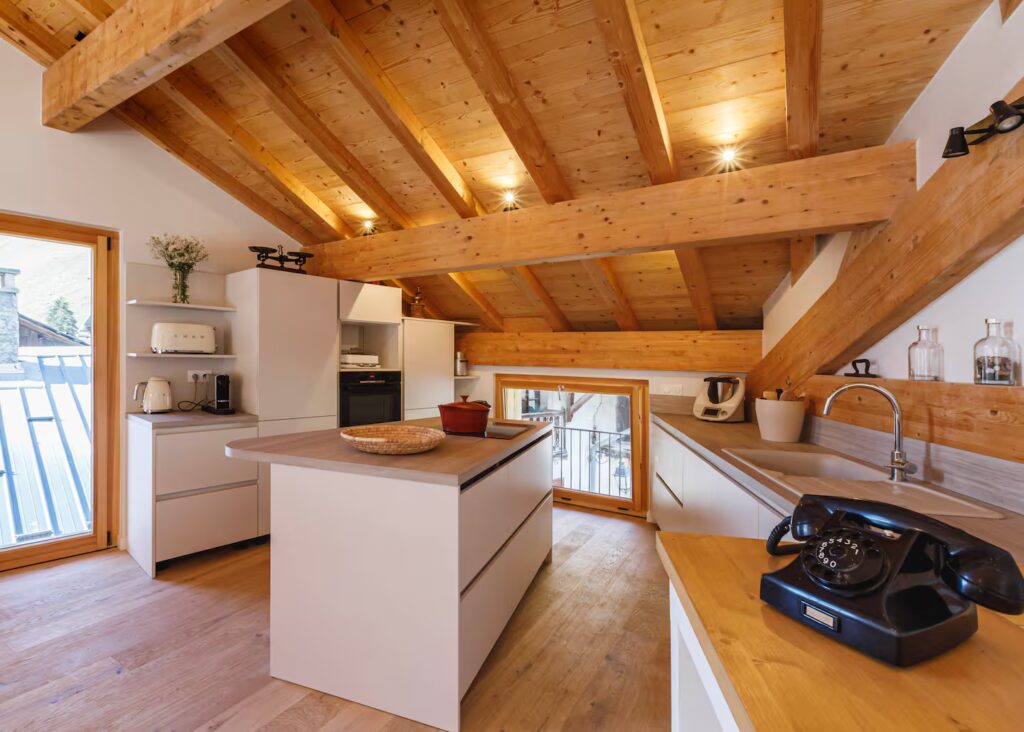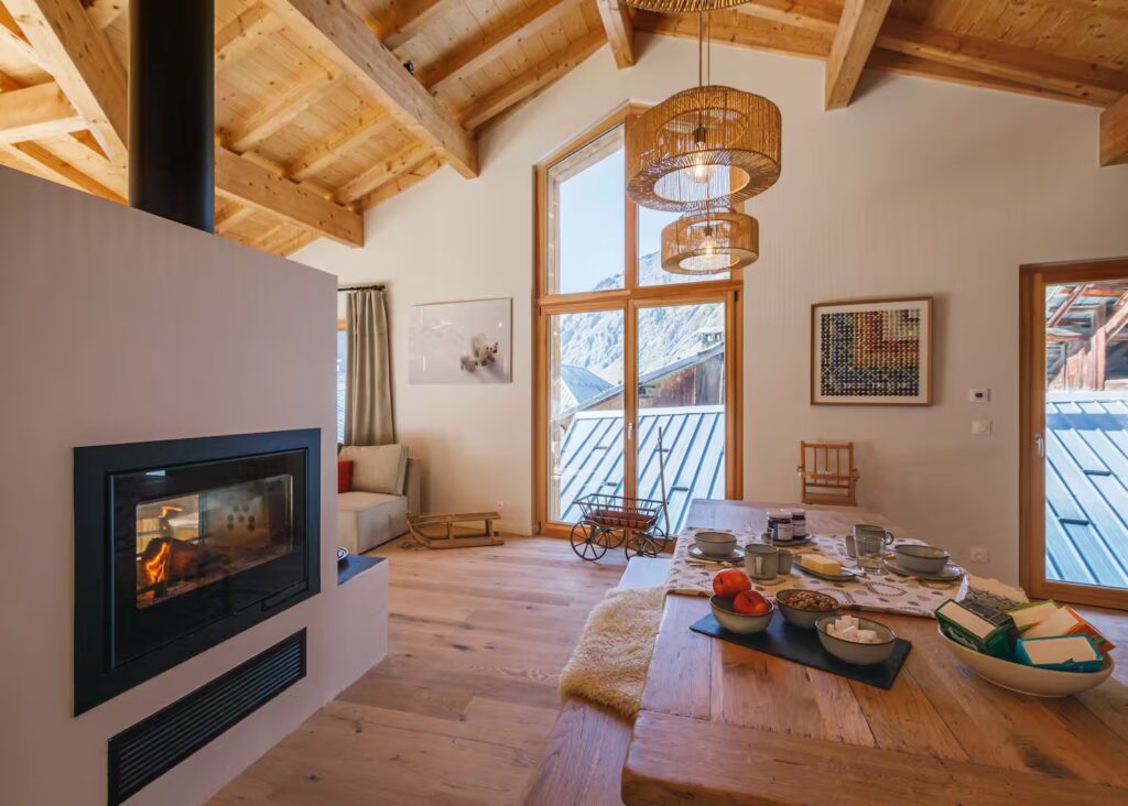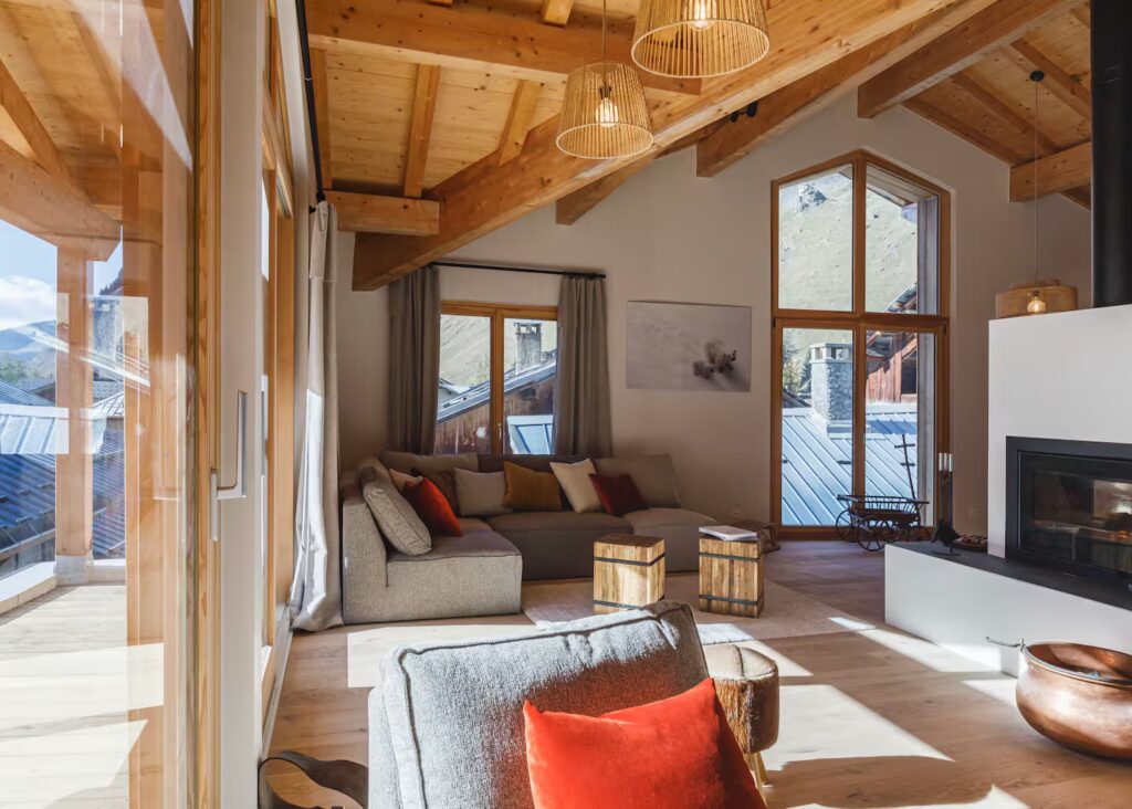 Les fenêtres ont été orientées pour capturer les plus beaux points de vue sur le paysage environnant, créant un lien constant entre l’intérieur chaleureux et la nature alpine. Chaque détail a été pensé pour préserver le caractère authentique du bâtiment tout en offrant une expérience de vie moderne et raffinée.