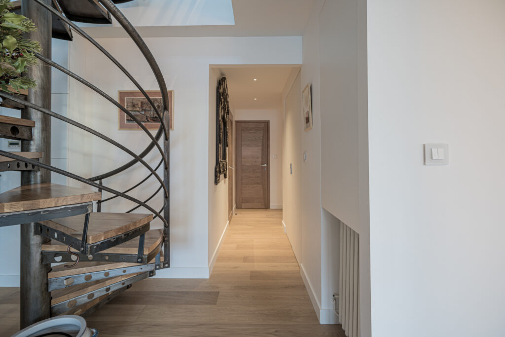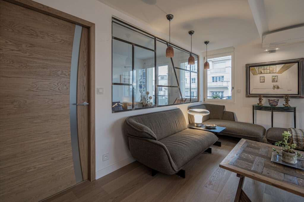 Ce projet de rénovation de duplex s’inscrit dans un contexte particulier : à la suite d’un incendie, les propriétaires ont souhaité être accompagnés par un architecte spécialisé en rénovation intérieure afin de reconstruire leur appartement et repenser entièrement leur cadre de vie.