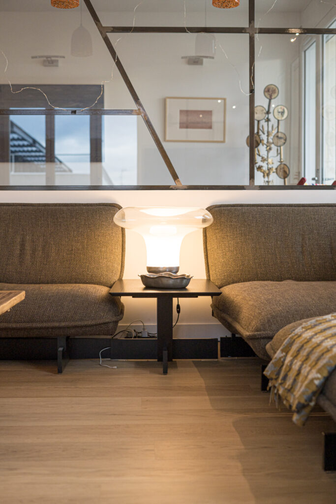 La redistribution des espaces a été au cœur du projet. La cuisine a été déplacée afin d’optimiser les circulations et d’offrir une nouvelle manière d’habiter le duplex, plus ouverte et plus conviviale. Ce changement structurel a permis de créer une pièce de vie centrale, adaptée aux usages contemporains.
